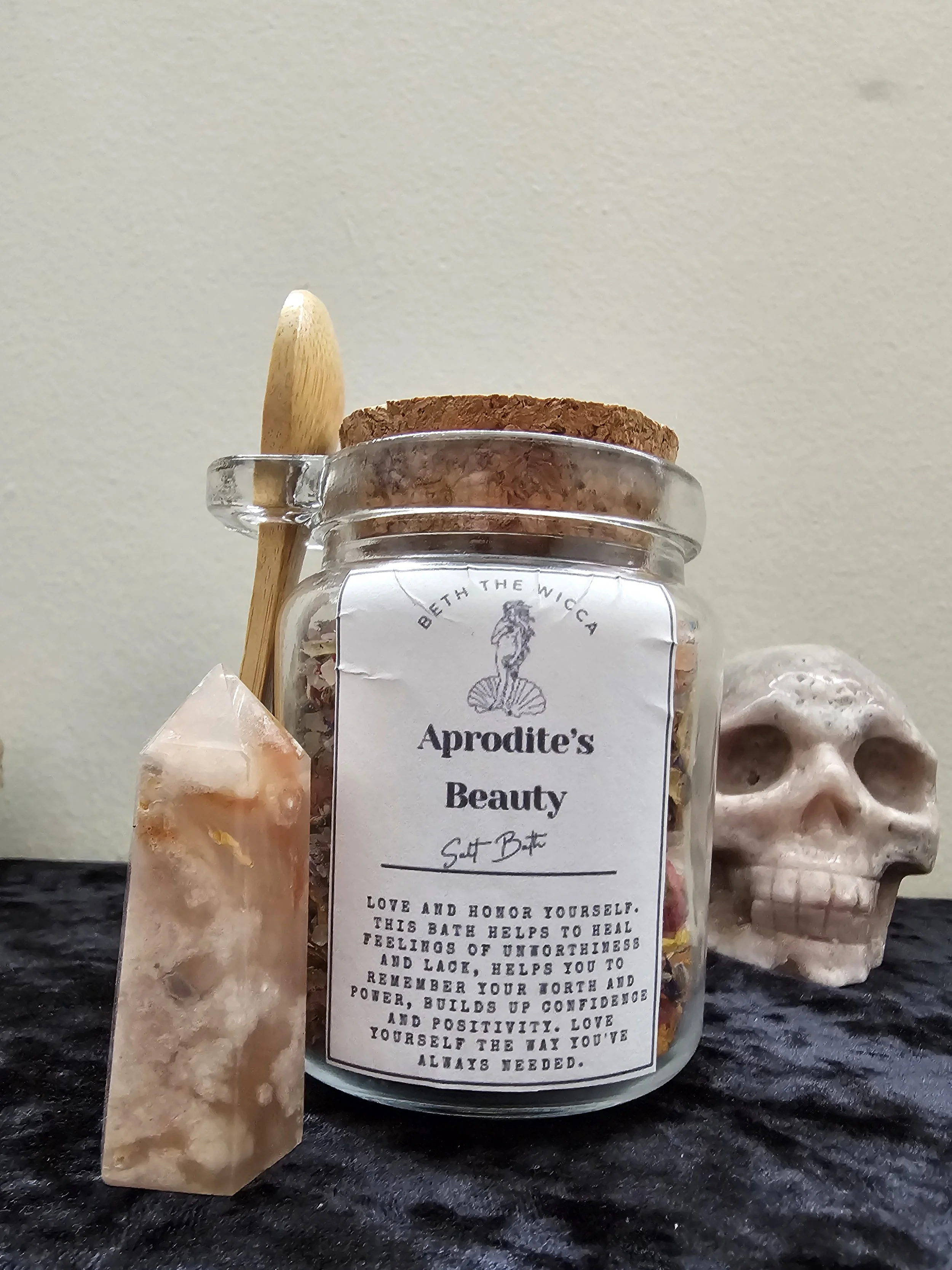 Love, honor, and cherish yourself. This salt bath helps to release unhelpful feelings, limiting beliefs, to help empower you to work through insecurities and troubling times and attract joy, happiness, self love and protection.